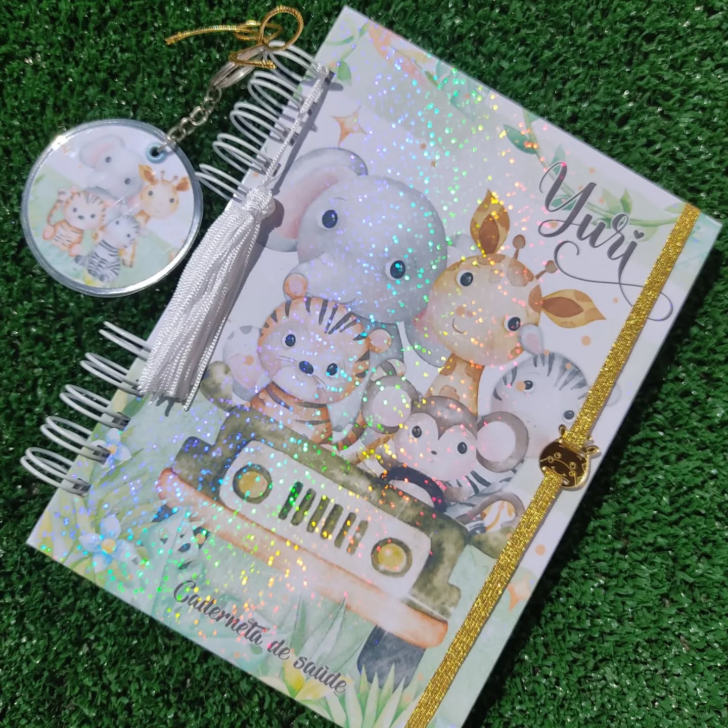 A Caderneta de Saúde Personalizada tema Safari é ideal para acompanhar o crescimento da criança com muita fofura, organização e aventura. Com ilustrações delicadas de animais do safari, ela transforma os cuidados com a saúde em um momento ainda mais especial.